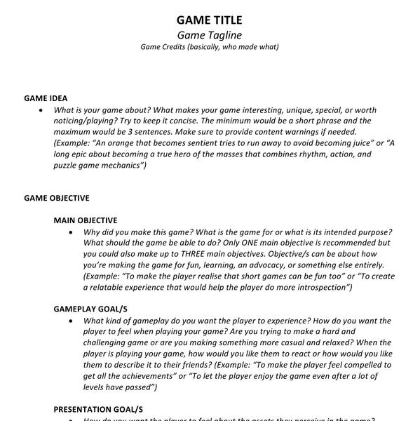 Free and easy-to-understand game design document template for people who want to try out game development.
